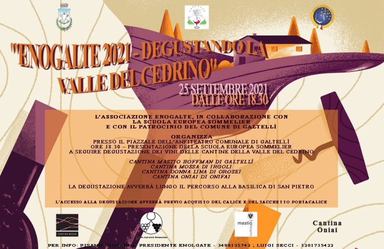 Torna l’autunno, è quasi tempo di vendemmia e quindi di degustazioni. La Sardegna è da sempre terra privilegiata per la produzione enologica ed è caratterizzata da una straordinaria varietà di vitigni. Per promuoverli l’associazione Enogalte, in collaborazione con il comune e la Scuola europea di sommelier, organizza Enogalte 2021. La manifestazione si terrà sabato 25 Settembre 2021 e vedrà la presenza dei migliori produttori della Valle del Cedrino.